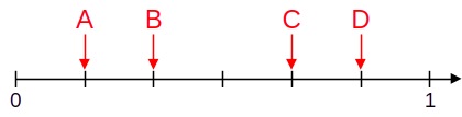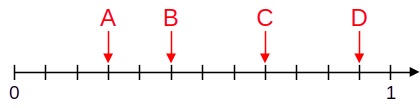Aufgabe 33: Ziehe den Pfeil am orangen Punkt auf die vom Bruch bestimmte Stelle der Skala.